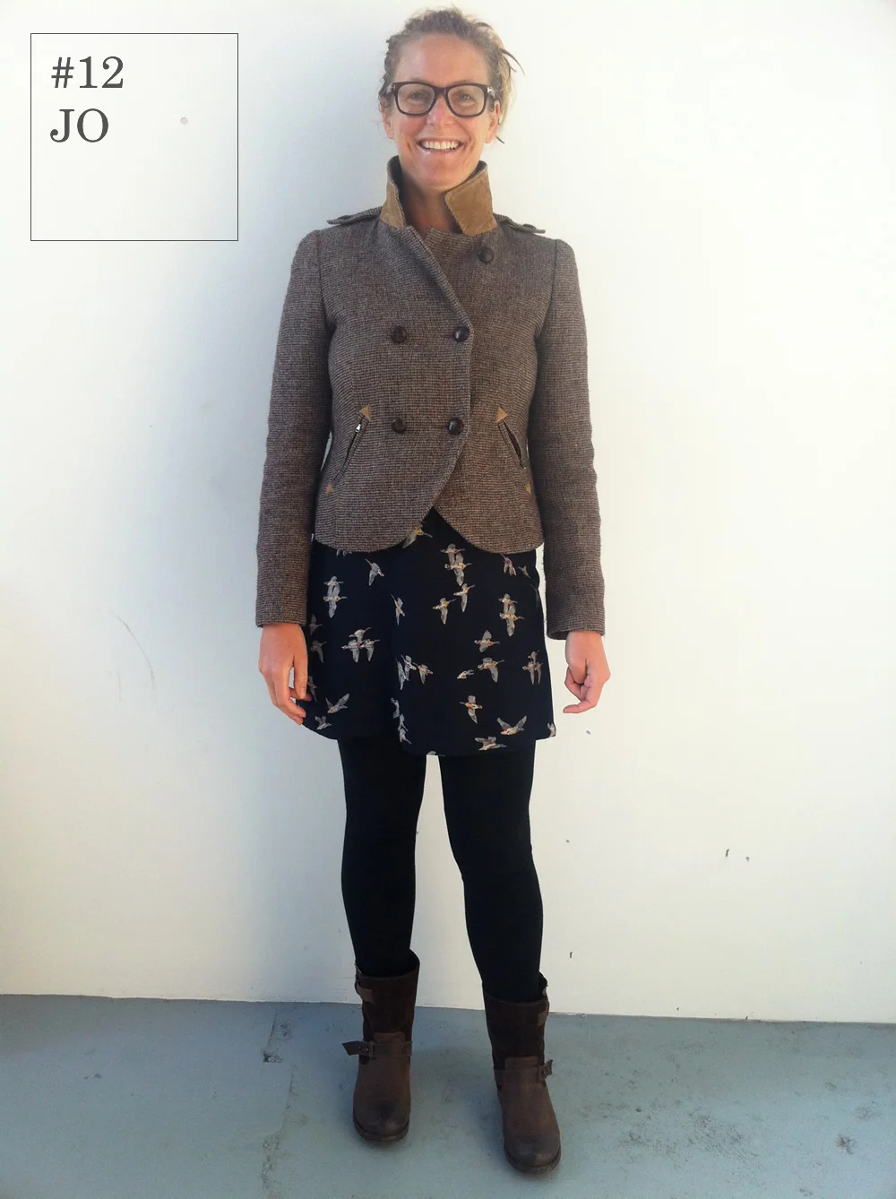 Jo’s fashionable look features an equestrian style jacket and boots that wouldn’t be out of place on a walk in the countryside on a frosty morning.